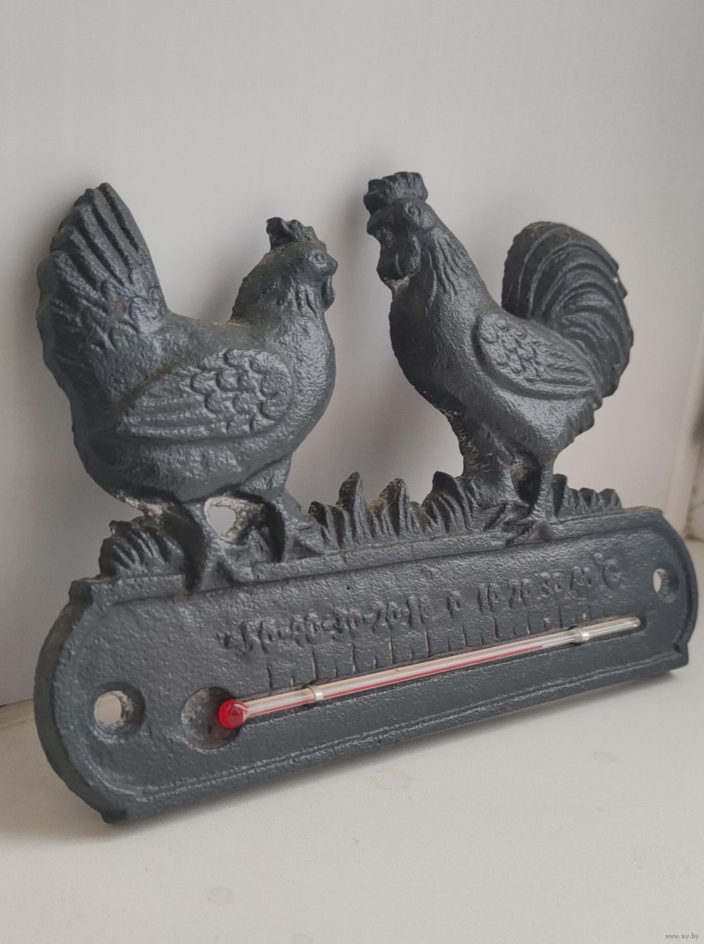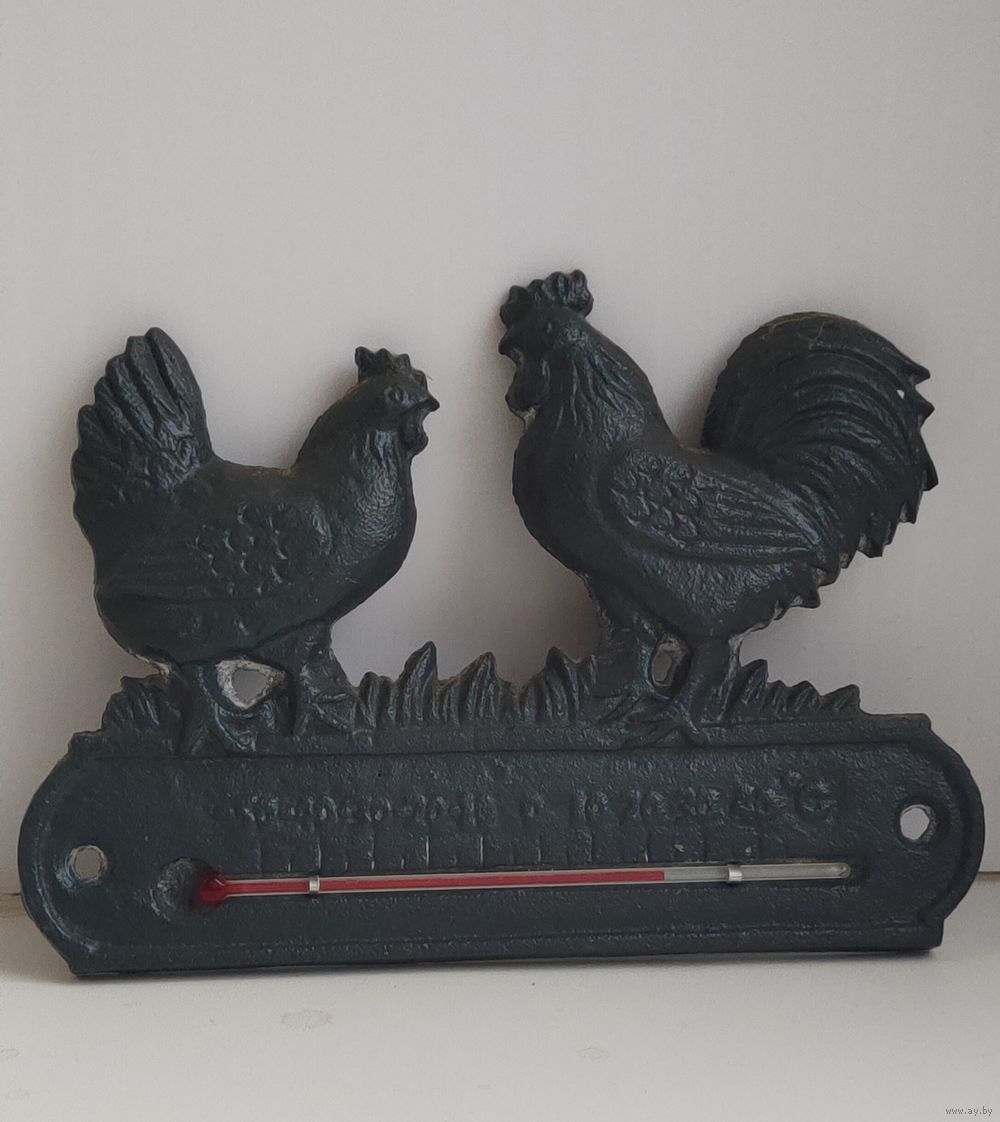 Редкий оригинальный термометр чугун "Петух и Курица". Франция.Состояние отличное.13×18см.