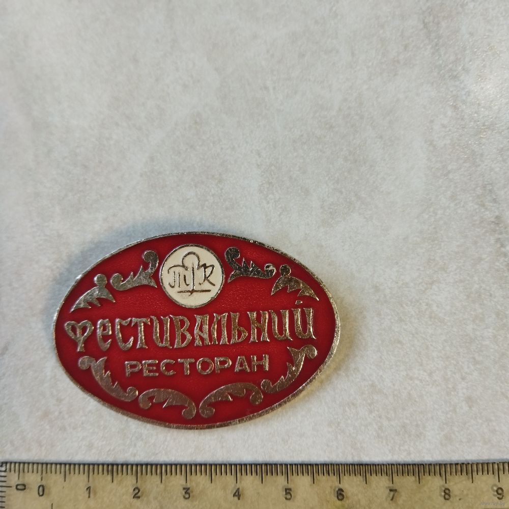 Редкий знак сотрудника общепита. Ресторан "Фестивальний" (Фестивальный). Советская Украина. Трест ресторанов и кафе. г. Львов.