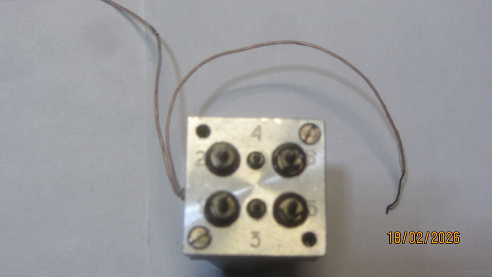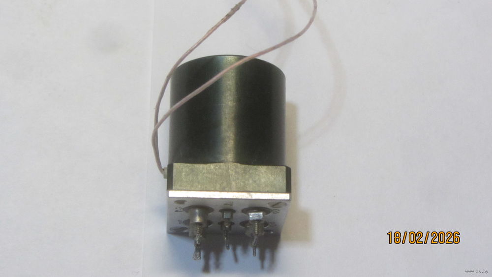 Корпус разьемный,сверху сьемная крышка на резьбе. Габариты: 21х21х34 мм. Имеет 8 выводов: 2 гибких (7-8) ,сопротивление катушки -182,4 Ома.