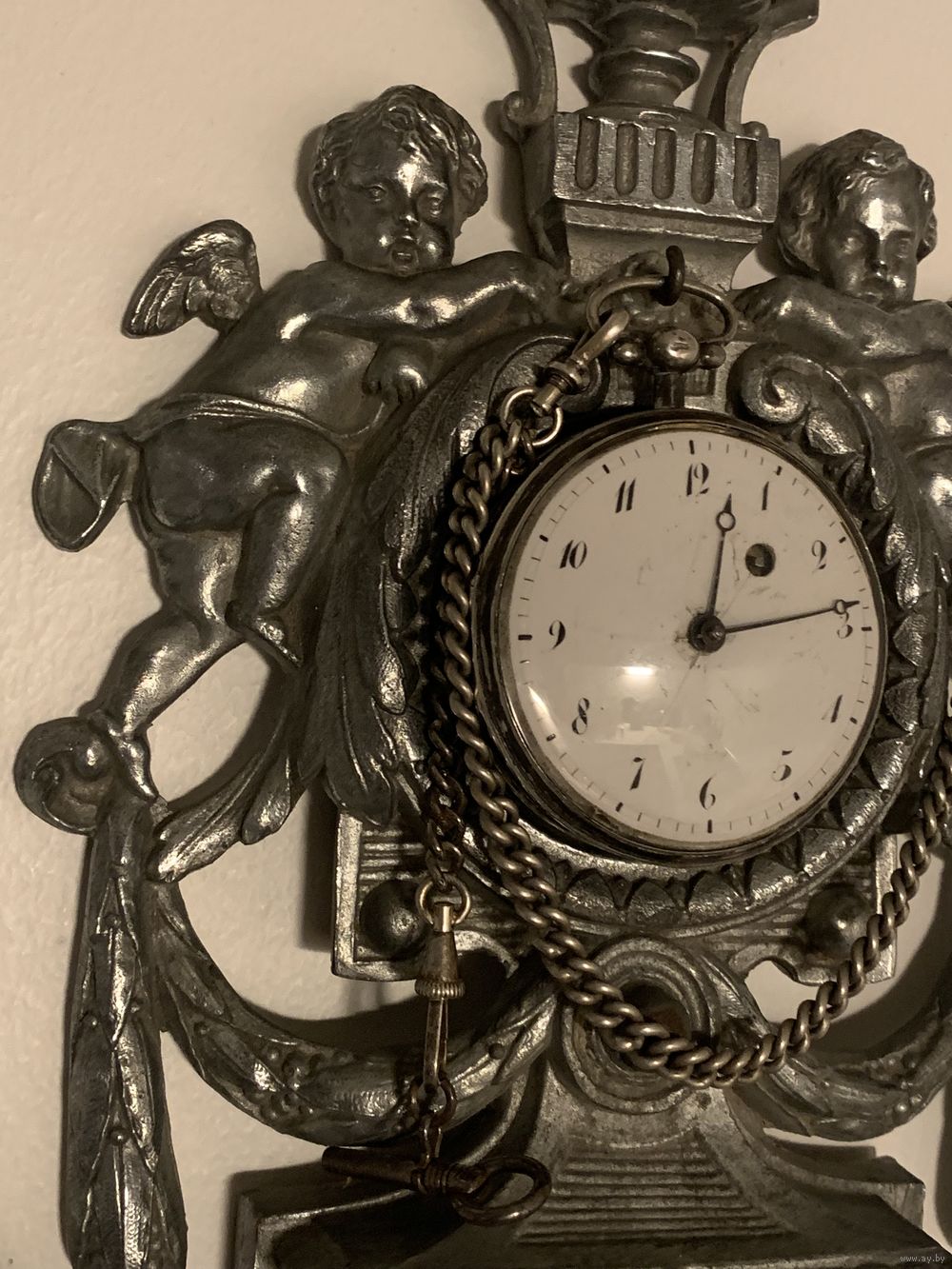 Предлагаются редкие английские фузейные карманные часы в полном комплекте с настенным подчасником. Подчасник предназначен для подвешивания часов на стену и красивого хранения.