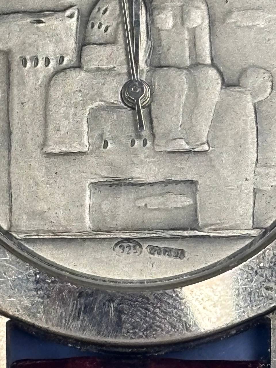 Уважаемые участники аукциона , ввиду внесенной смуты двумя комментаторами решил капнуть хромпиком на циферблат , (под крышкой с обратной стороны) .Результат - материал серебро. Добавил последнее фото. Судя по простоте своей механизм стоит не родной .