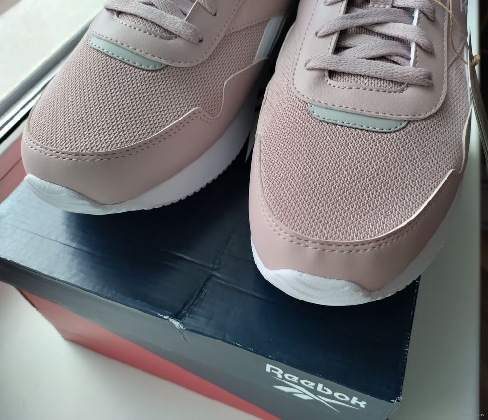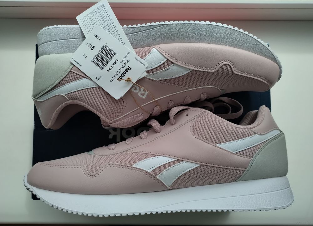 Кроссовки Reebok Jogger Lite (артикул 100074136) в нежно-розовом цвете («пыльная роза») с белыми вставками. Это унисекс-модель, предназначенная для бега и повседневного использования.