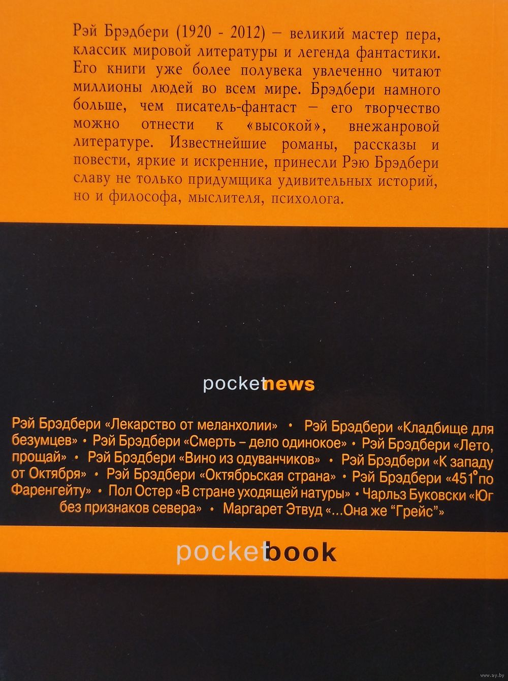 Тираж 5000 экз. 310 стр. «Марсианские хроники» — одно из самых известных произведений Рэя Брэдбери. Читатель найдет здесь романтику освоения новых земель, героическое преодоление препятствий на этом пути — недаром Брэдбери писал, что видел сходство покорения Марса с покорением Дикого Запада. Но в этой книге, как и во всех остальных, великий Брэдбери не желает укладываться в прокрустово ложе жанра научной фантастики: «Марсианские хроники» пронизаны лиризмом, тоской по планете Земля, на которой мы живем и которой мы вечно благодарны.