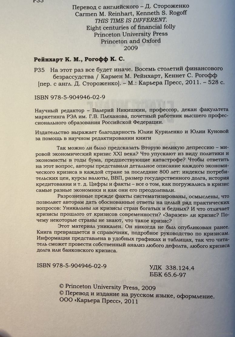 Рейнхарт, Кармен; Рогофф, Кеннет На этот раз все будет иначе: Механизмы финансовых кризисов восемь столетий одни и те же 978-5-904946-02-9, 9785904946029 Карьера-пресс