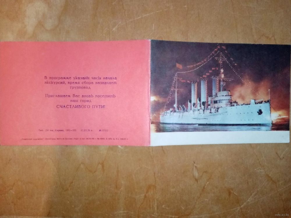 Реклама Экскурсия по Ленинграду 1970 открытка двойная Крейсер Аврора