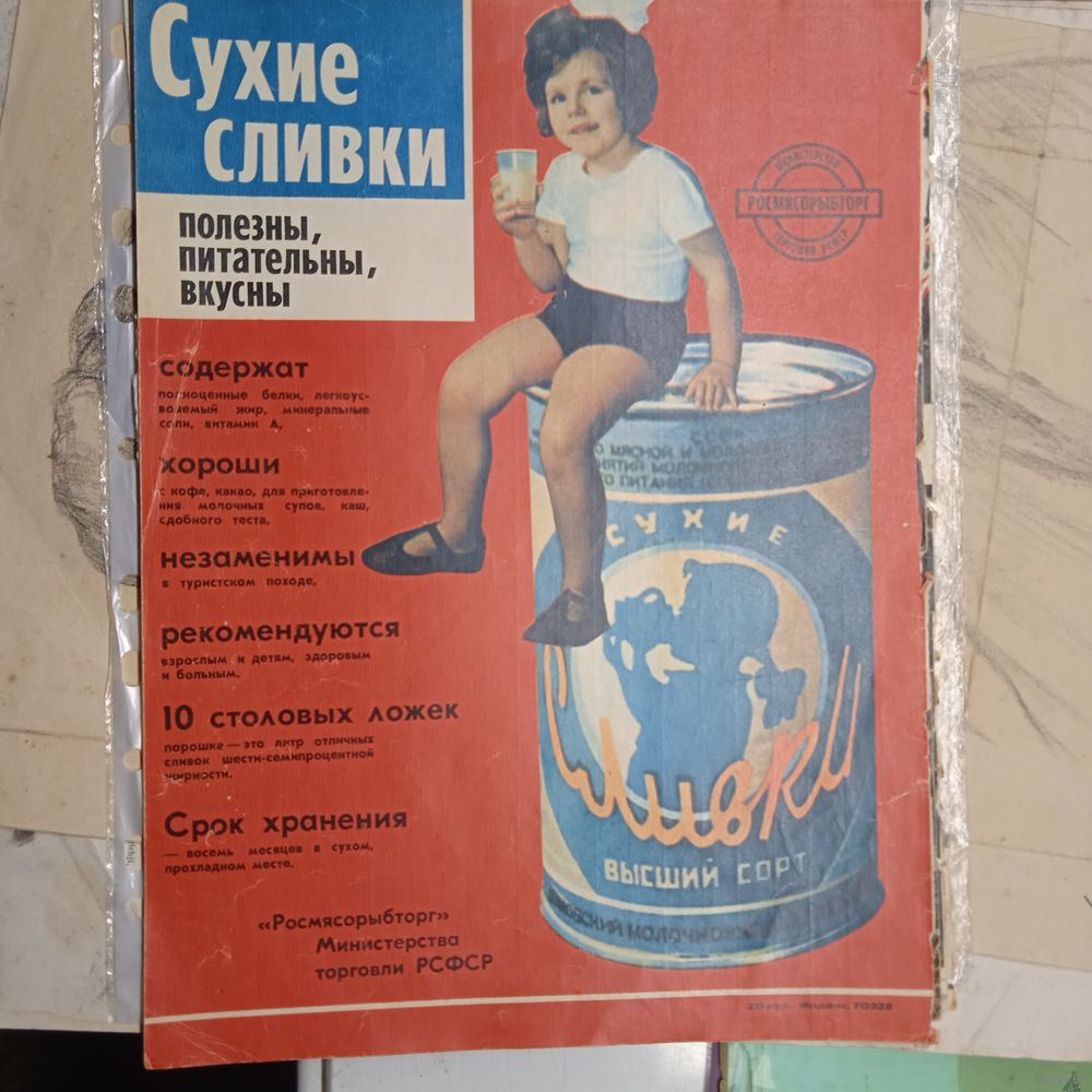 Реклама СССР . СУХИЕ СЛИВКИ. 60-70г. 20века.