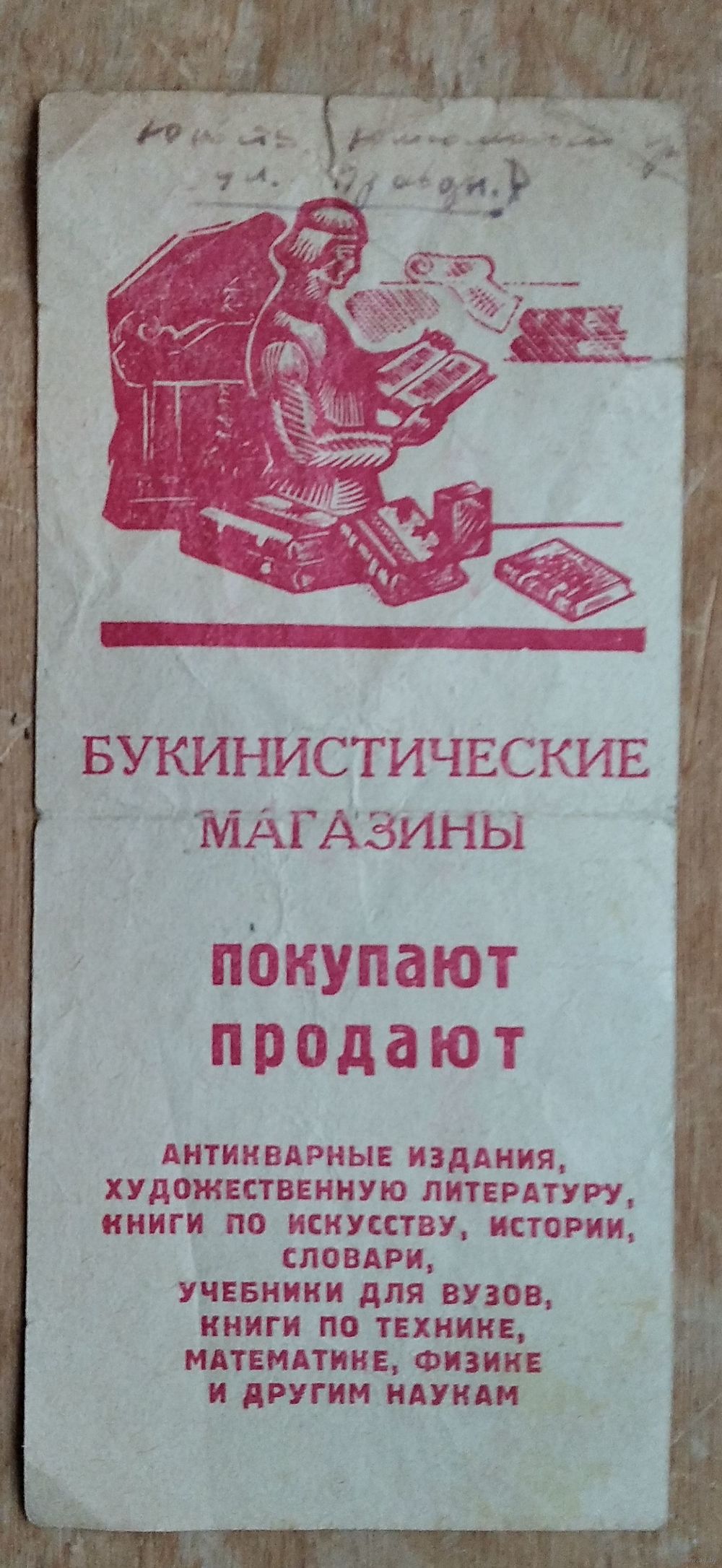 Рекламка букинистических магазинов г.Москва. 1966 г.