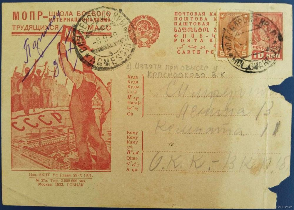 Рекламно-агитационная карточка. 1931 г.