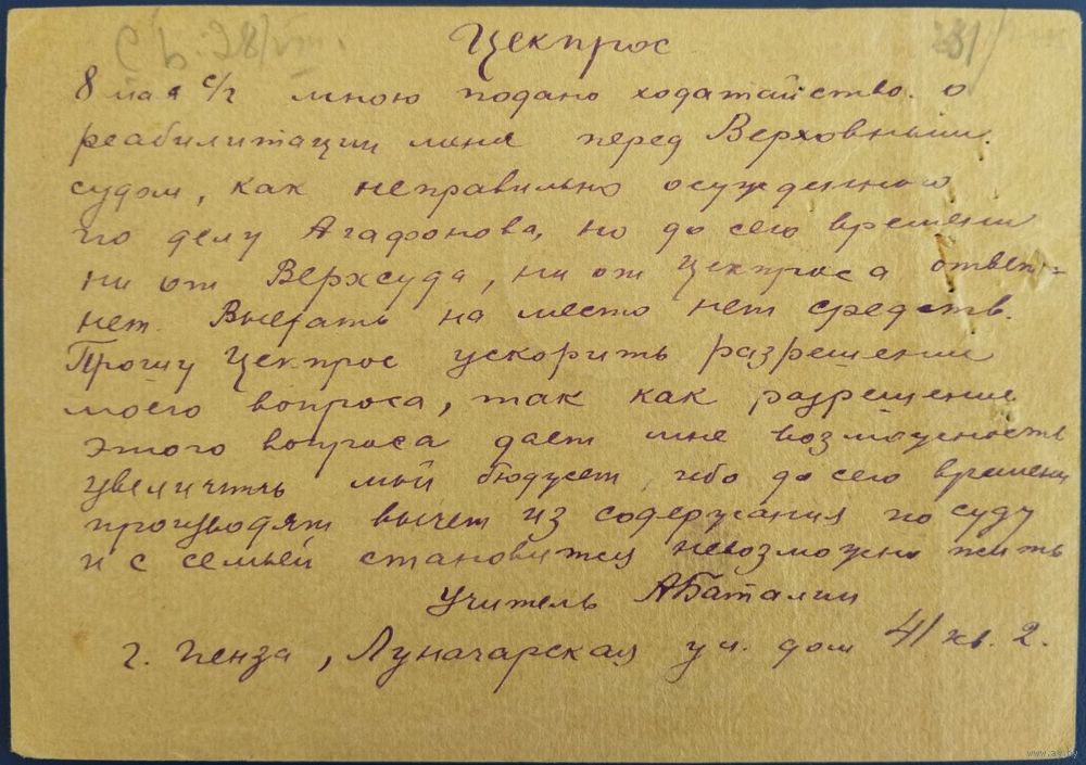 Рекламно-агитационная карточка. Несправедливо осужденый. 1930 г.
