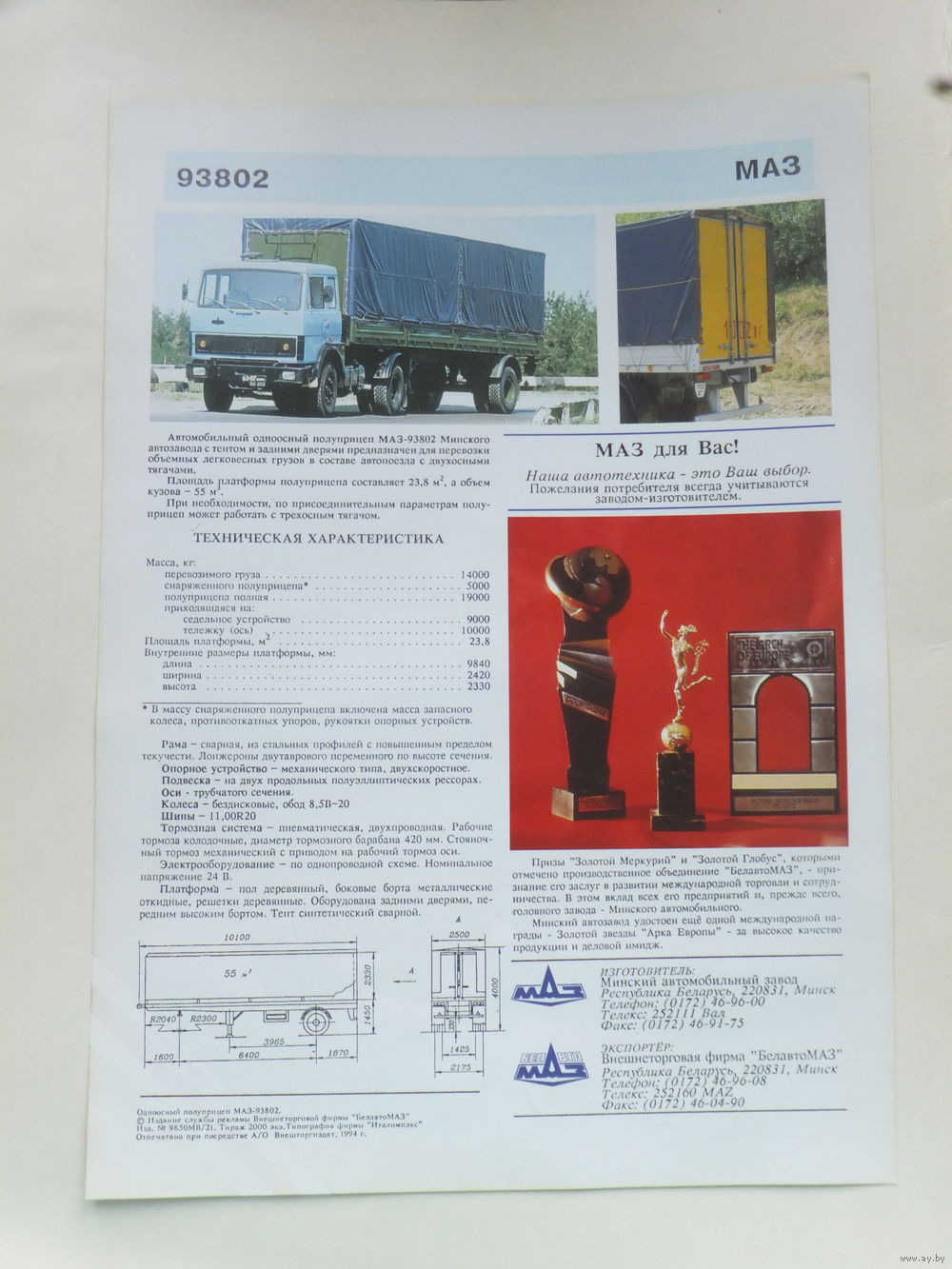 Рекламный буклет БелавтоМАЗ 1994 г