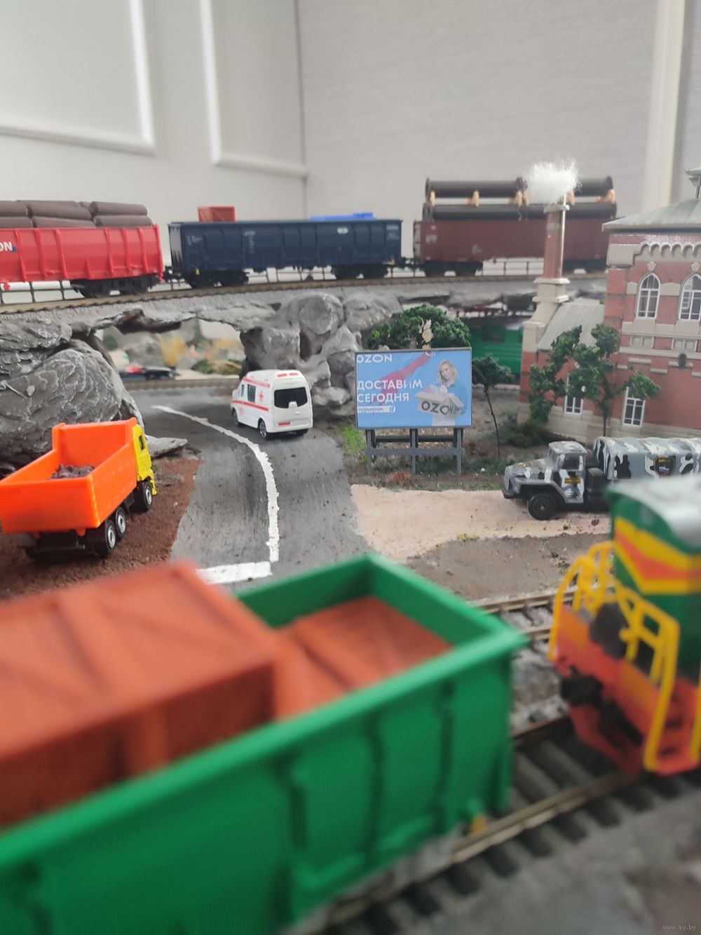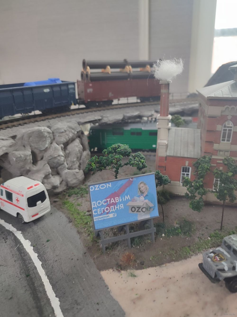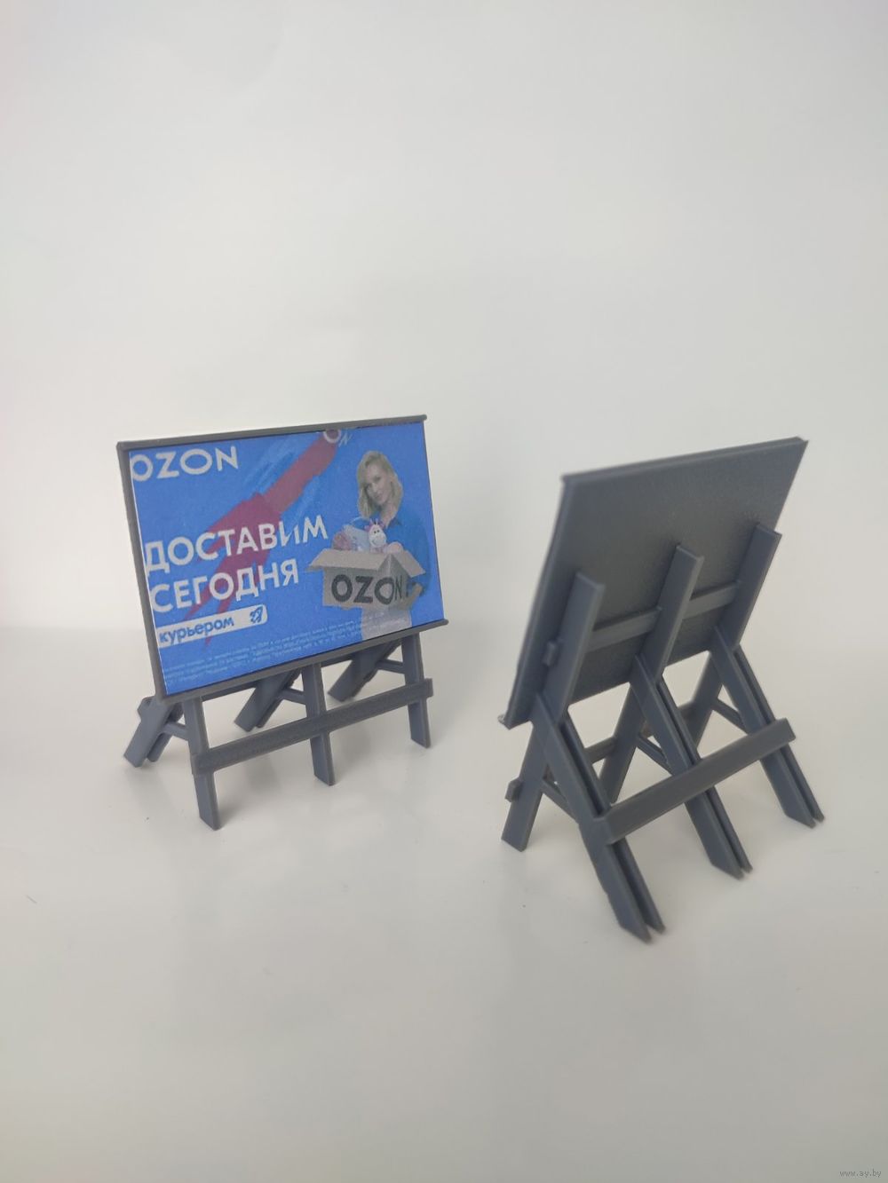 Рекламный щит - 1шт, масштаб HO 1/87 . Материал пластик 3D печать. Реклама на фото только для примера, щит пустой. самостоятельно распечатать и в клеить рекламу на наш выбор.