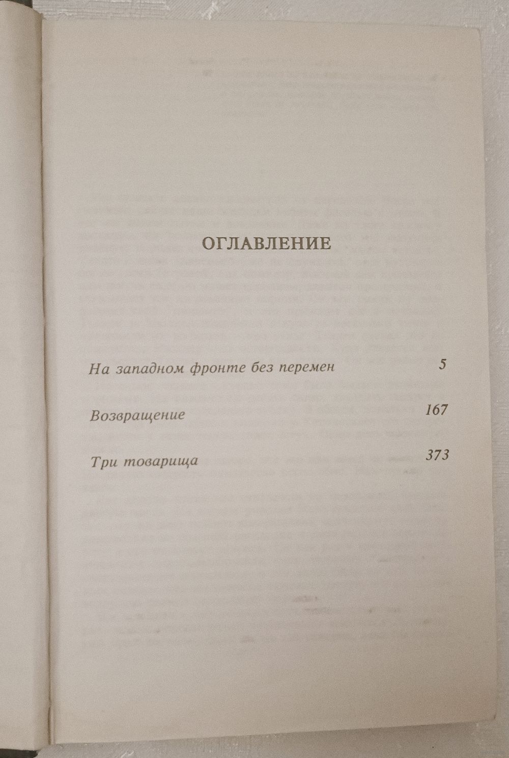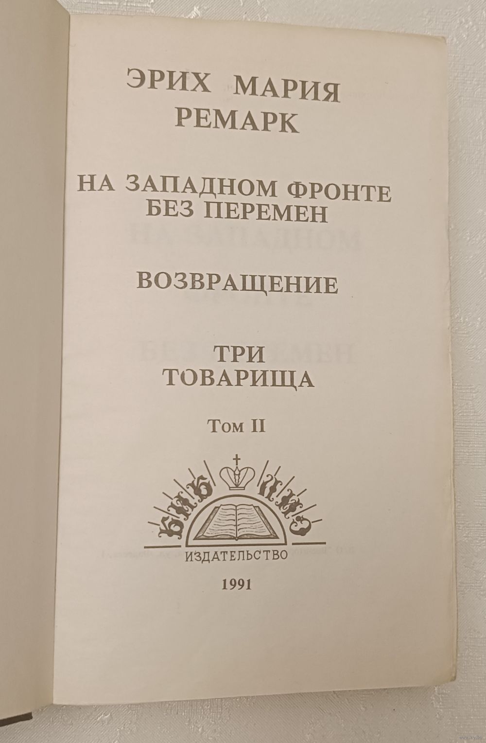 Ремарк Эрих Мария. Избранные произведения в 5 томах. Том 2. На Западном фронте без перемен. Возвращение. Три товарища. М., Издательство Библио, 1991, стр. 733, твердый переплет, обычный формат.