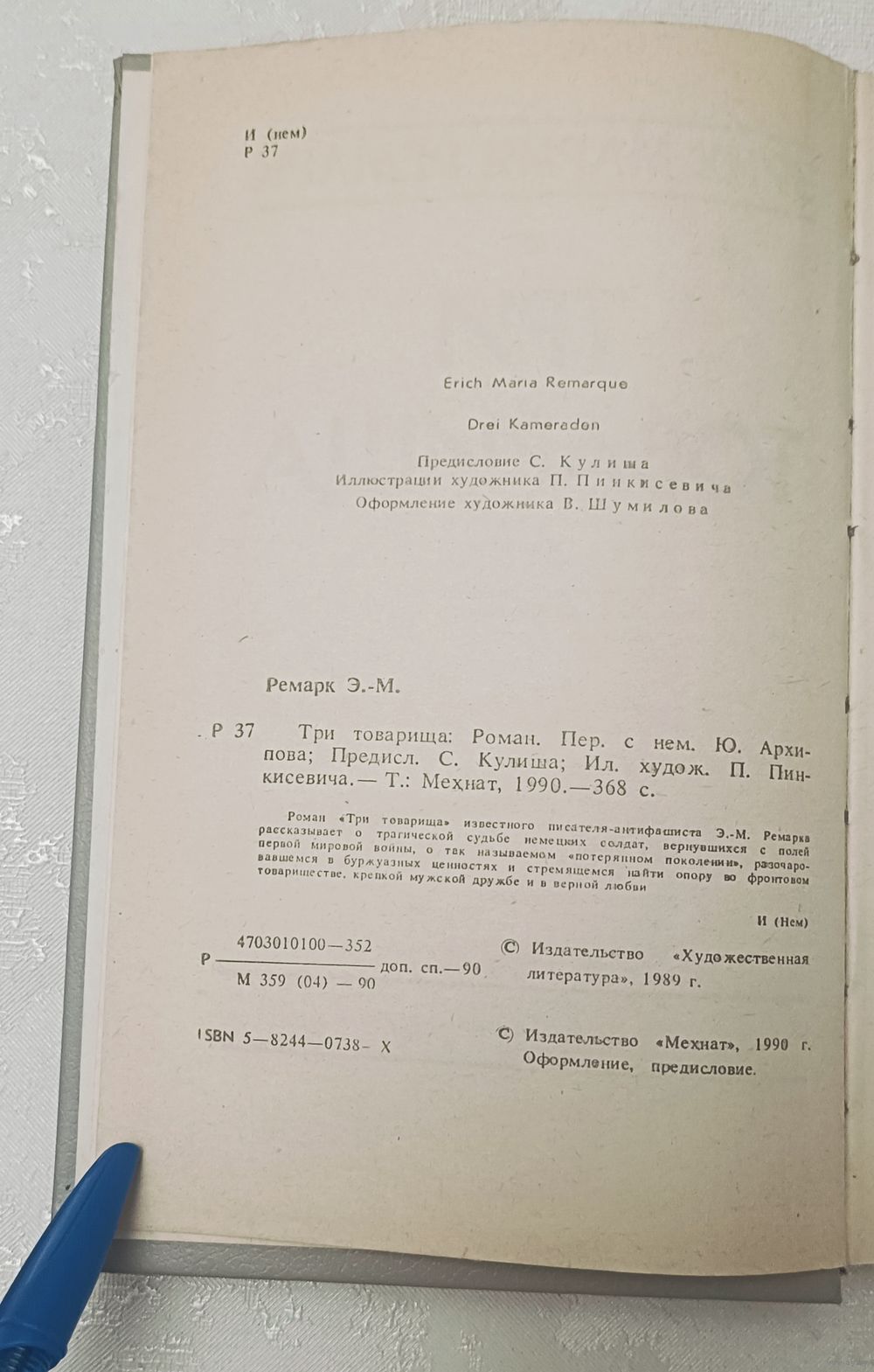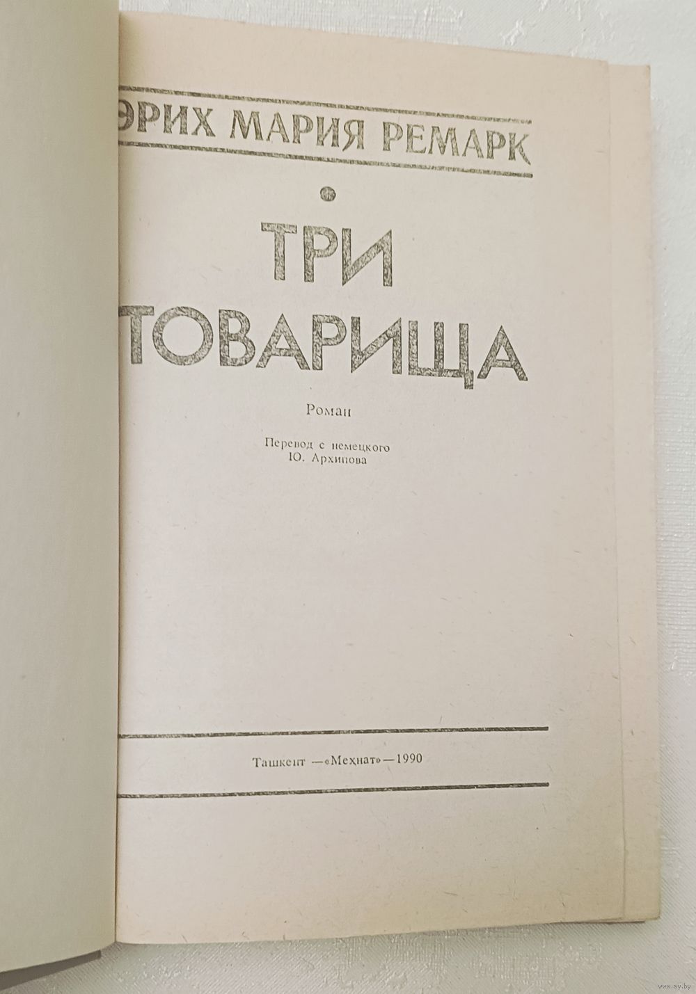 Ремарк Эрих Мария. Три товарища. Т.: Мехнат, 1990.-368 с., твердый переплет, обычный формат.