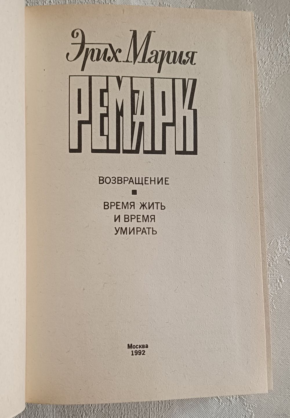 Ремарк Эрих Мария. Возвращение. Время жить и время умирать. А/О"КНИГА И БИЗНЕС" А/О"КРОМ" совместное предприятие LEXICA, Москва, 1992, стр. 510, твердый переплет, обычный формат.