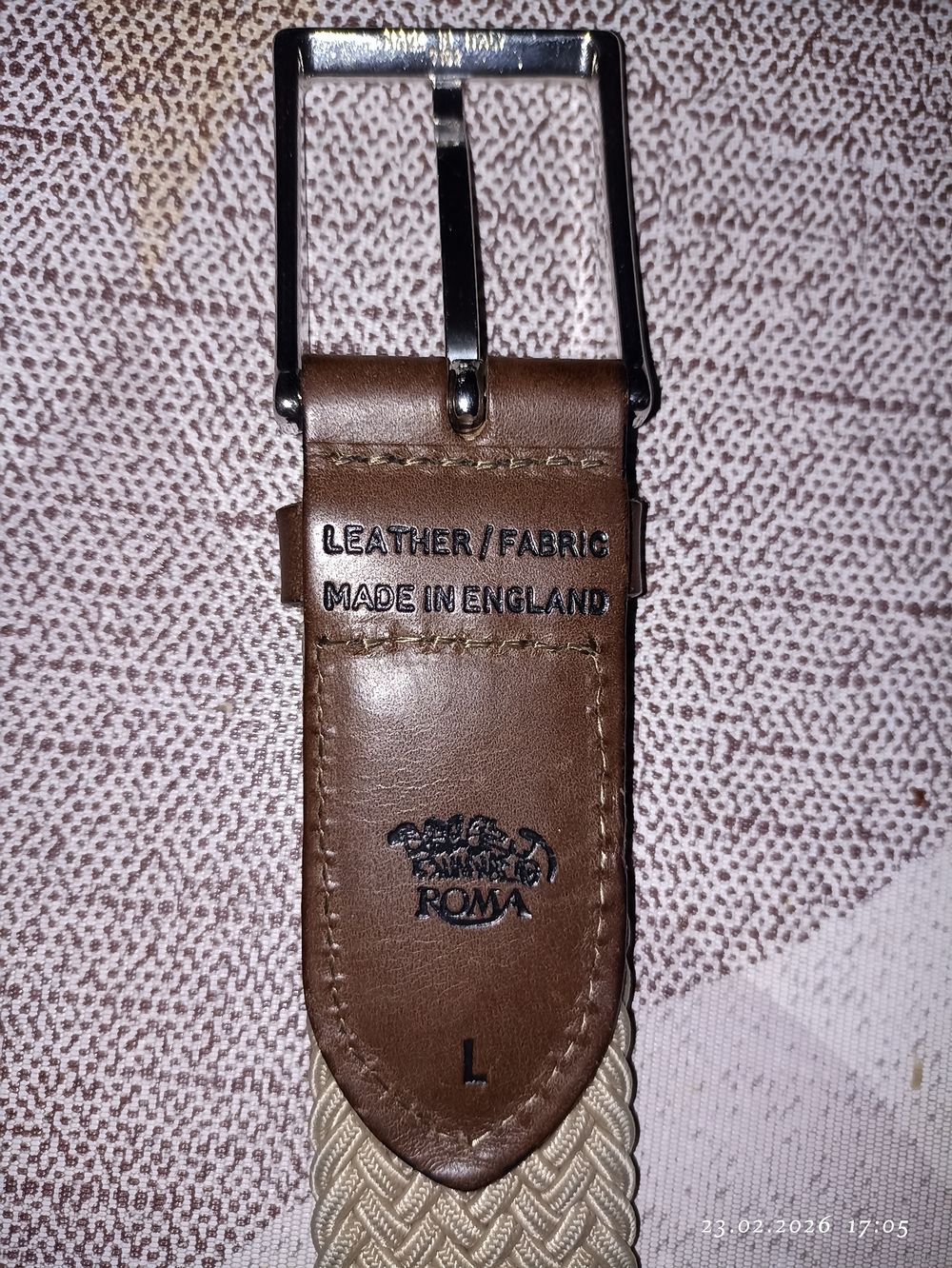 Мужской плетеный ремень из кожи и ткани размера L от бренда Roma, произведенный в Англии.