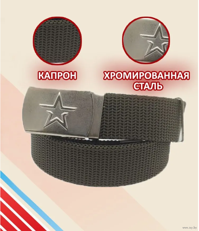 Ремень АР (Юнармия) со стальной пряжкой, 35 мм, хаки