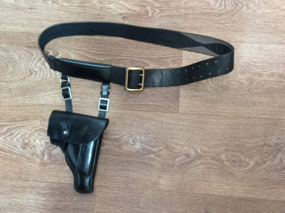 Черный кожаный ремень офицера ВМФ СССР длинна 120 см ширина 4,3 мм. И кабура кожа для ПМ