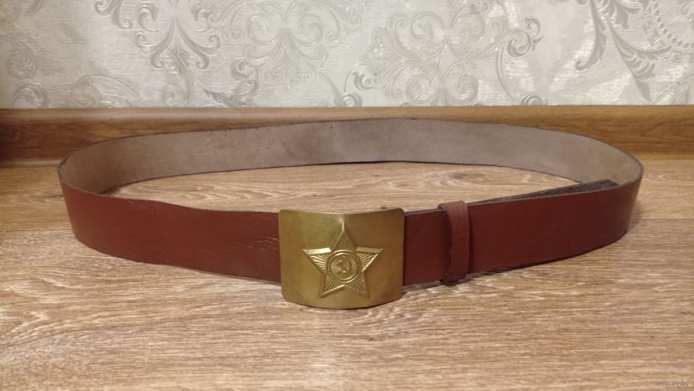 Кожанный солдатский ремень. В длине 135см. Ширина 4,3см и латунна бляха к нему.