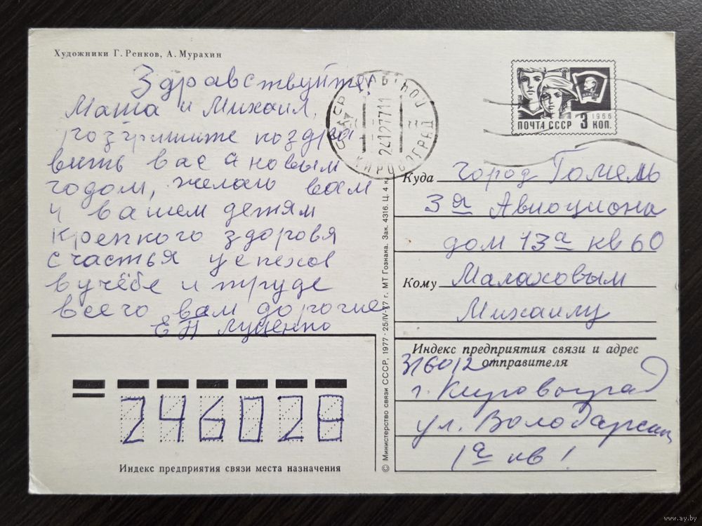 Ренков Мурахин С Новым годом 1977 подписанная открытка СССР