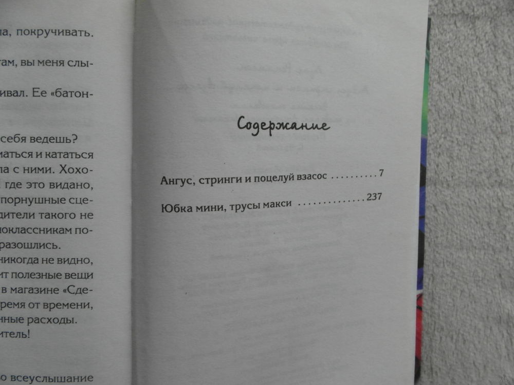"Ангус, стринги и поцелуй взасос" - это весёлые и озорные приключения Джорджии Николсон. Героиня сталкивается с типичными подростковыми проблемами: романтическими запутанностями, дружбой и самовыражением. Книга пропитана юмором и содержит множество остроумных ситуаций из жизни современной подростковой девушки.