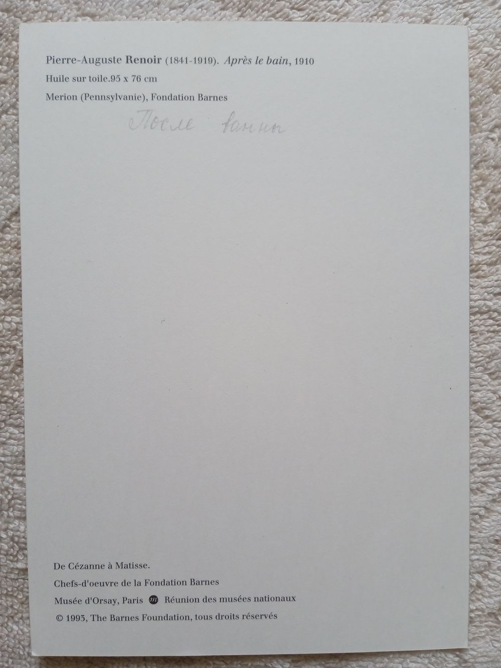 Ренуар. После купания. Издание Франции