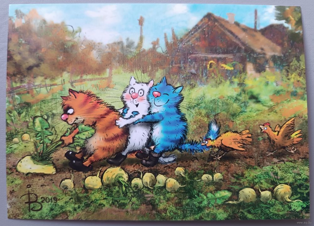 Репка. Синие коты. Ирина Зенюк. Юмор. Авторская открытка, глянец. АСARDS.BY