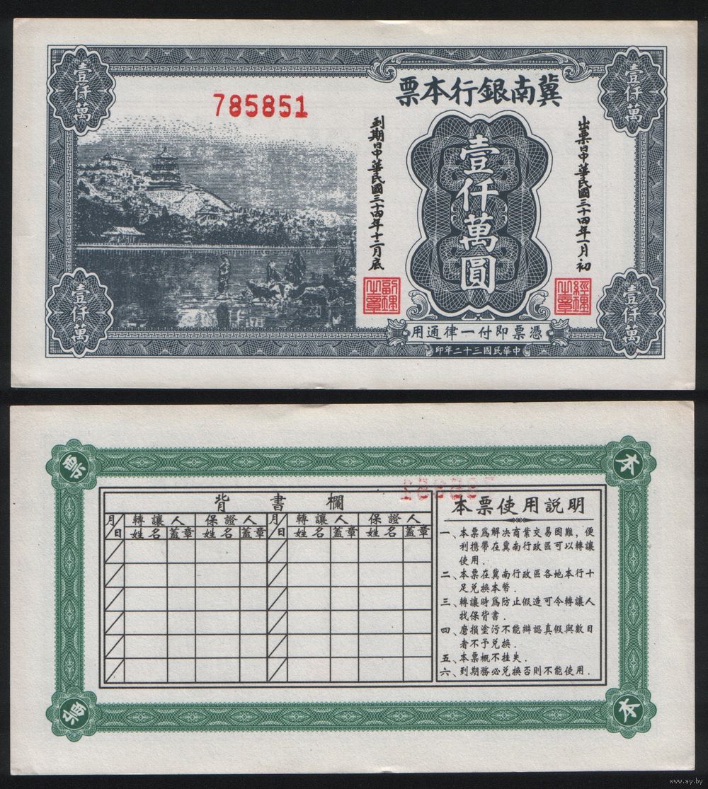 РЕПРИНТ (КОПИЯ) азиатской боны 785851 ТОРГ/ВАША ЦЕНА