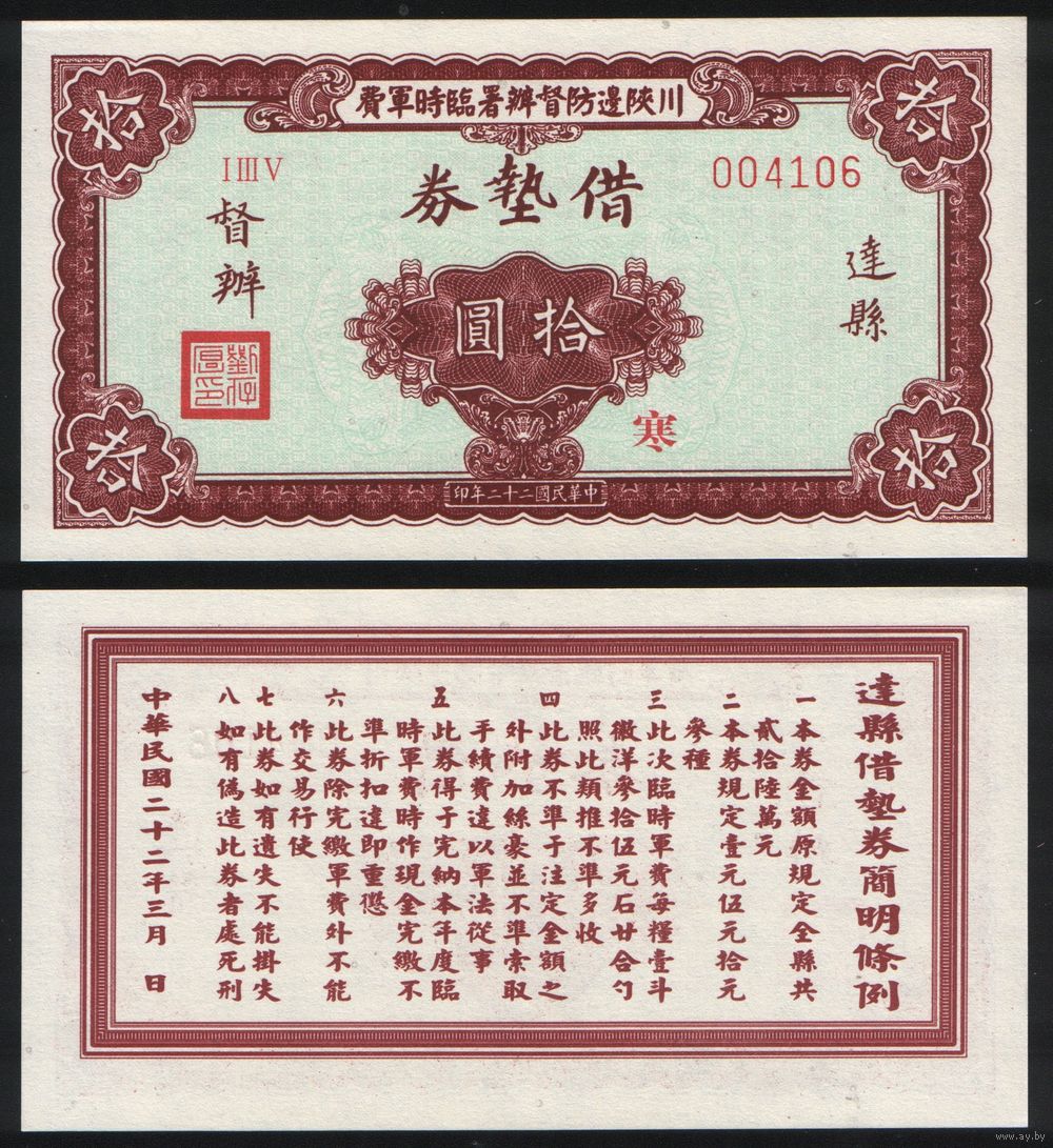 РЕПРИНТ (КОПИЯ) азиатской боны I III V 004106 ТОРГ/ВАША ЦЕНА
