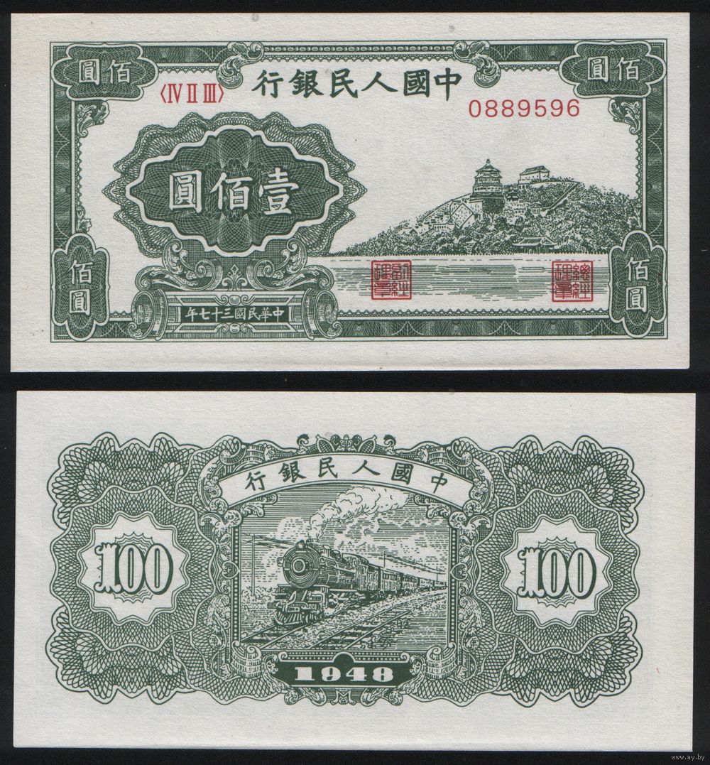 РЕПРИНТ (КОПИЯ) азиатской боны КНР P-806 100 юань 1948 год (IV II III) 0889596 ТОРГ/ВАША ЦЕНА