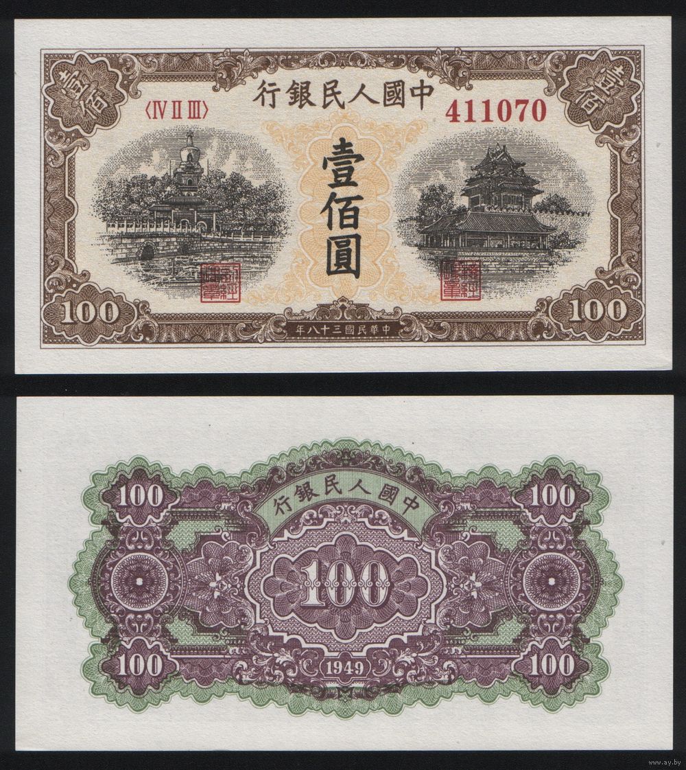 РЕПРИНТ (КОПИЯ) азиатской боны КНР P-833b 100 юань 1949 год (IV II III) 411070 ТОРГ/ВАША ЦЕНА