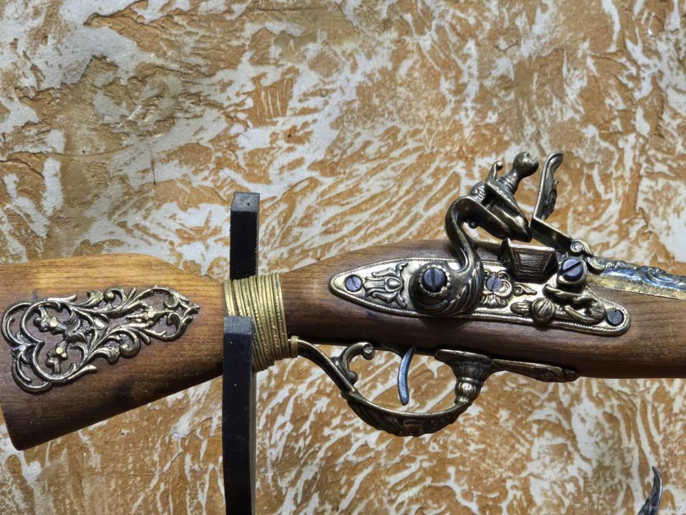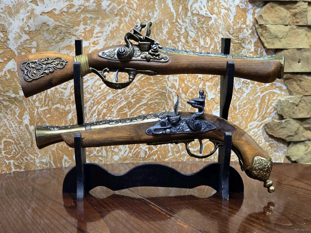 Репродукция кремниевых мушкетов из дерева , бронзы и др металла с имитацией механизма заряжения и выстрела. Другое название пистоль. Сувенирное оружие - отличный подарок с мужским характером. Чудесная вещь в интерьер кабинета или гостиной. Приобретены в Европе более 25 лет назад. Цена указана за пару. Можем ее разумно обсудить