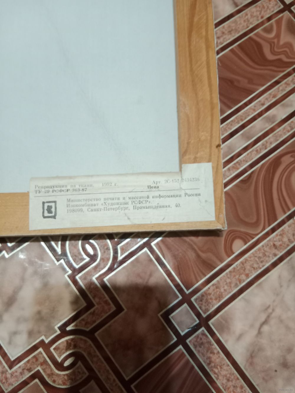 Репродукция на ткани цветы винтаж 1992г. СССР