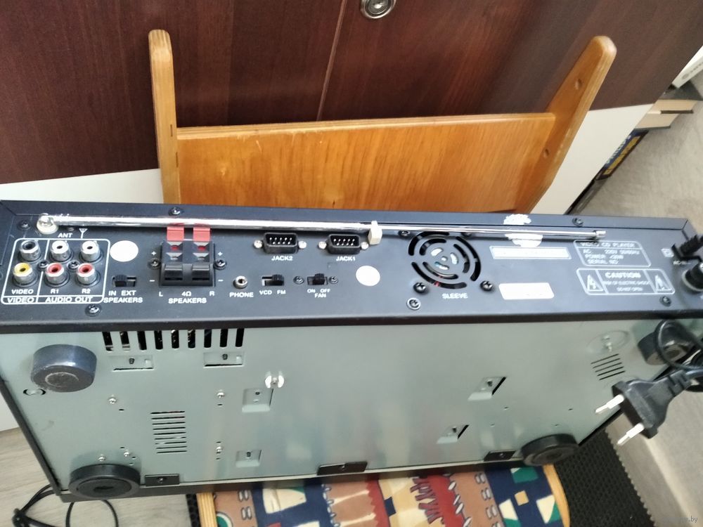 море функций, сд, мп3, радио, караоке, игровая приставка, видео сд, встроенные динамики, пульт есть. куплен в оаэ
