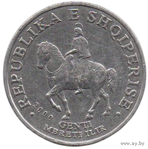Республика Албания. 50 леков (лек) 2000. Гентий (Король (Царь) Иллирии) верхом на коне.