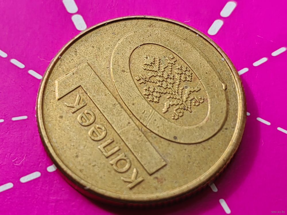 Республика Беларусь (РБ). 10 копеек 2009. Брак, смещение, раскол штемпеля аверса, выкрошка штемпеля реверса. Торг.