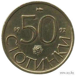 Республика Болгария. 50 стотинок (стотинки) 1992. Лев. Нечастая.