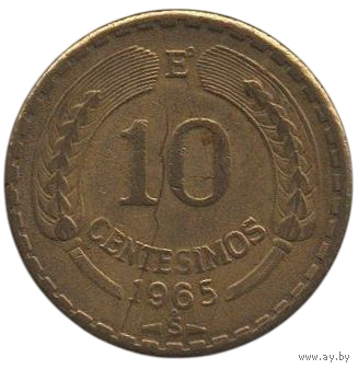 Республика Чили. 10 сентесимо 1965. Фауна. Кондор.