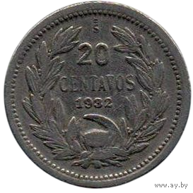 РЕСПУБЛИКА ЧИЛИ 20 СЕНТАВО 1932. ФАУНА. КОНДОР. Вариант с именем дизайнера. НЕЧАСТАЯ