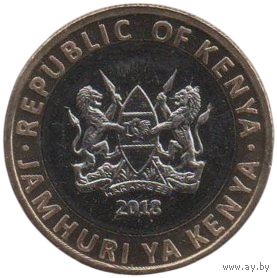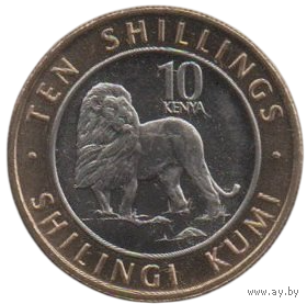 Республика Кения. 10 шиллингов 2018. UNC. Фауна. Лев.