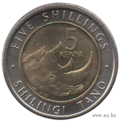 Республика Кения. 5 шиллингов 2018. UNC. Фауна. Носорог.