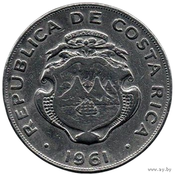 РЕСПУБЛИКА КОСТА РИКА 1 КОЛОН 1961. ГОД ТИП. НЕЧАСТАЯ. 29 мм. Корабль.