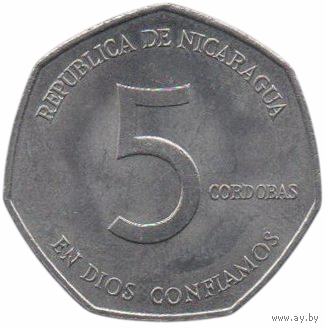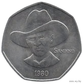 Республика Никарагуа. 5 кордоб 1980. UNC. Аугусто Сесар Сандино (Национальный герой Никарагуа). Нечастая.