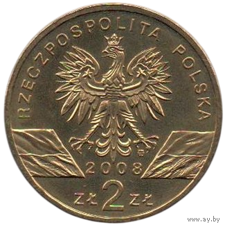 РЕСПУБЛИКА ПОЛЬША. 2 злотых 2008. Всемирная природа. Фауна. Сокол.