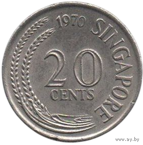 Республика Сингапур. 20 центов 1970 Фауна. Рыба- меч.