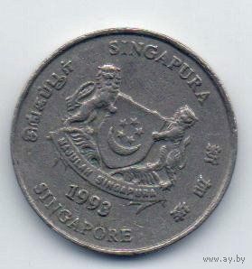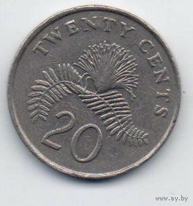 Республика Сингапур. 20 центов 1993, 1996. Щит ниже щитодержателей. Цветок каллиандра. Погодовка. Цена за одну монету.