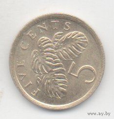 Республика Сингапур. 5 центов 1986, 1989. Щит выше щитодержателей. Лиана монстера деликатесная. Погодовка. Цена за одну монету.