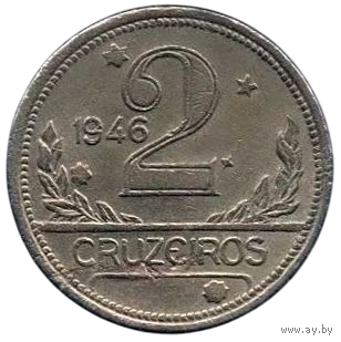 РЕСПУБЛИКА СОЕДИНЁННЫХ ШТАТОВ БРАЗИЛИИ 2 КРУЗЕЙРО 1946. КАРТА СТРАНЫ.