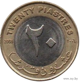 Республика Судан. 20 пиастров 2006. Фауна. Ватусси. Биметалл. Тип: Верхняя часть шестёрки прямая. Не магнитится.