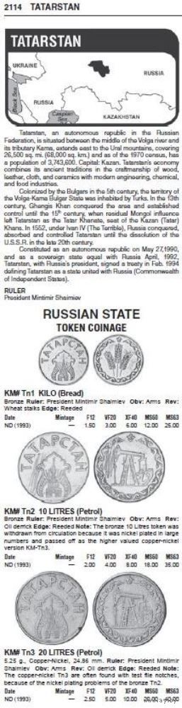 Республика Татарстан. 1000 рублей (20 литров бензина) 1993. ( Институт производства банкнот и монет. Белград. Югославия ). Башня Сююмбике Казанского кремля.