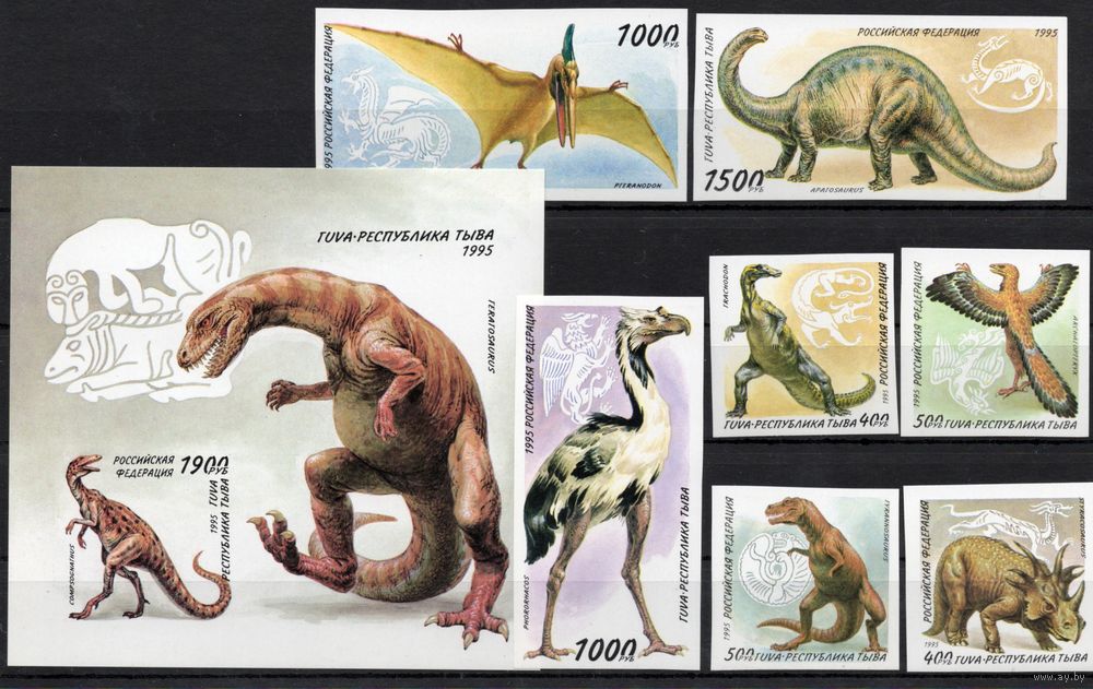 Республика Тыва(Тува) 1995. Динозавры 7м+бл беззубцовые